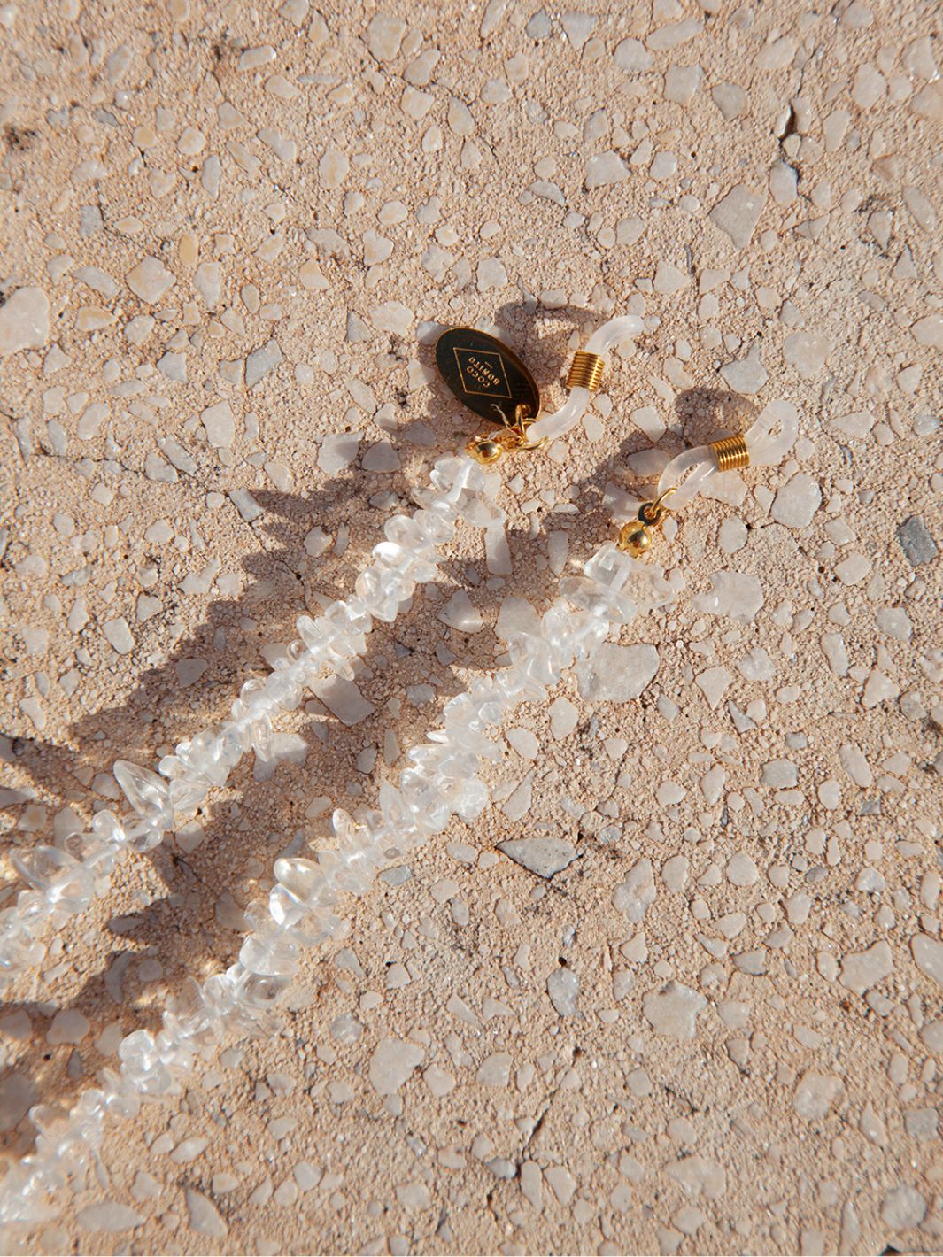 The Olaya glasses cord is made out of real transparant crystal, which is believed to have the ability to amplify energy by absorbing, storing, relating and regulating it.. Take a closer look and you can see through the crystal stones. Wear the sunny cord on your glasses with the sun reflecting on your crystals. They will sparkle as never before.