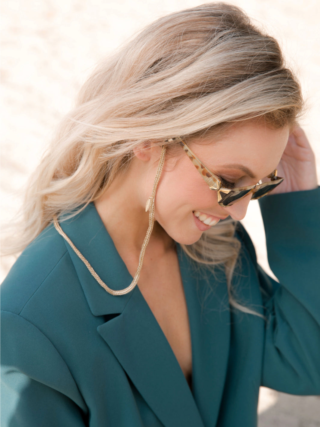 The Tiny C eyeglass string is classic, exudes class and has a unique braided design. Subtle material combined with soft colours ensure that this sunglasses chain is not too dominant and perfectly accentuates your outfit. Because this sunny cord is very lightweight, the wearing comfort is unprecedented.